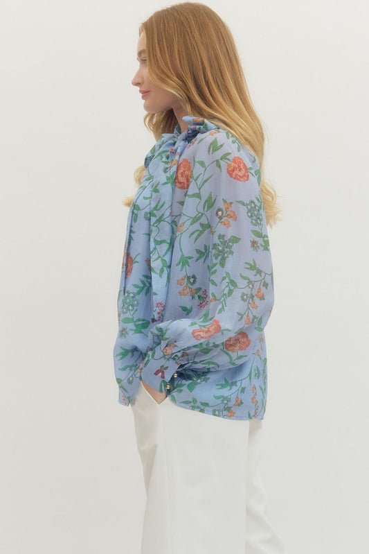 Blue Floral Bow Top