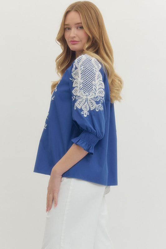 Indigo Embroidered Top